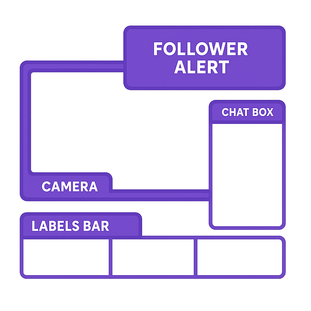 Sketch your screen before you build it.Decide where the camera, chat, alerts, and labels live — and why. Every element should have purpose and breathing room. Cluttered overlays make streams look messy and hard to watch.